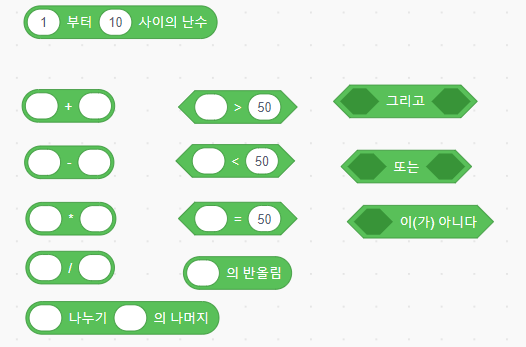 이번에는 난수와 '연산'탭의 코드를 결합해보겠습니다.