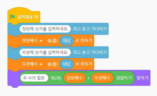 "두번째 숫자를 입력하세요"의 대답을 '두번째수'변수에 저장합니다.